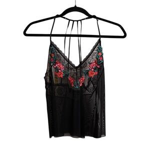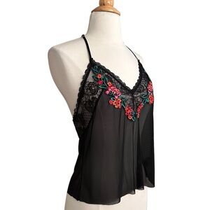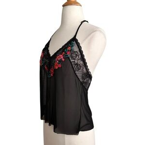 INC Sheer Black Lacey Strappy Camisole Floral Embroidery Lingerie Inspired Sz M