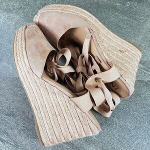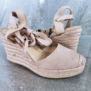 INC Shoes Womens 11 M Maisie Tan Lace-Up Espadrille Wedge Sandals Ankle Wrap Tie