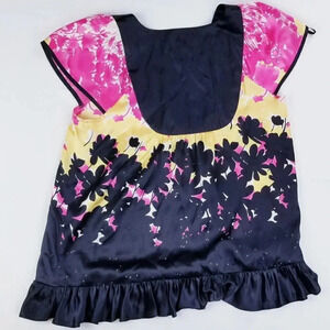 INC Silk Floral Ruffle Bottom Square Neck Top Sz 8