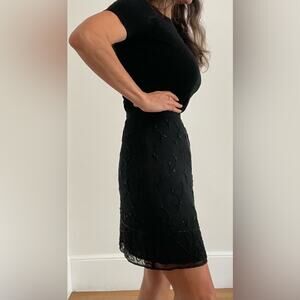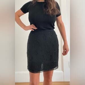 100% silk shell. Zipper in back and clasp. Lining polyester.