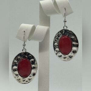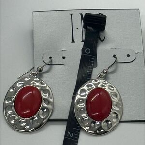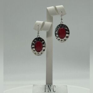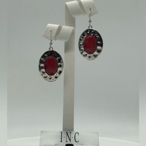 INC Silver Tone Post Dangling Earnings with Large Stone