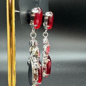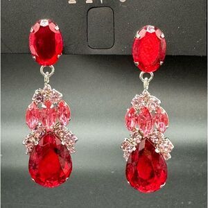 INC Silver Tone Red Crystal Post Dangle Earnings