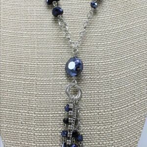 I.N.C. Silver Tassel Necklace with Jet Stones & Rhinestones NWT 26"