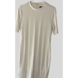 INC Size 16 Office Work Wear Ribbed Knit Beige Short Sleeve Sweaterdress