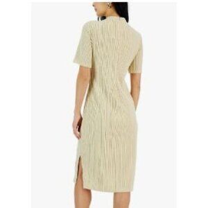 Step into this I.N.C. Women's Ribbed-Knit Midi Sweater Dress Vanilla. This ribbed knit midi dress offers a polished and professional look, featuring short sleeves and a neutral beige tone, suitable for diverse settings. Size 16 Sku 3584 Vanilla