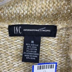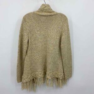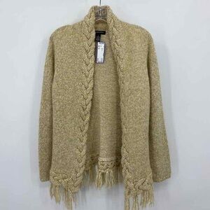 INC Size M Beige Silver Metallic Wool Blend Fringe Open Front Cardigan Sweater