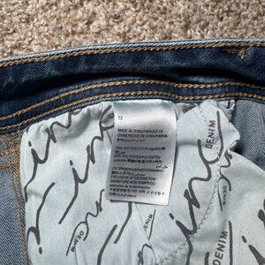 INC Skinny Leg Regular Fit Jeans Size 12 Plaid Patch Frayed Hem Holes Pockets