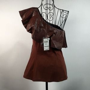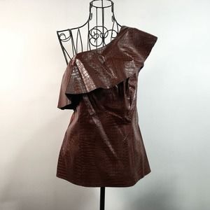 INC Sleeveless Asymmetrical Neckline Top, Women's Size S - Deep Sienna Brown