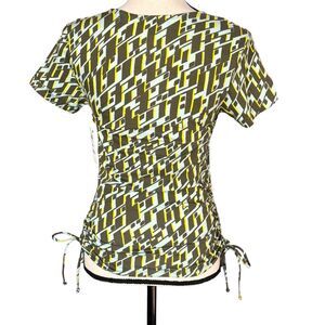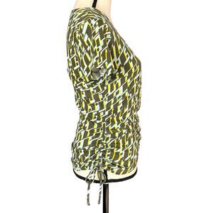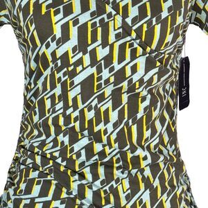 INC Small Top Geometric Surplice V-Neck Cap Sleeve Ruched Stretch Multi