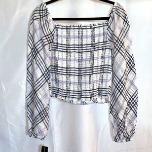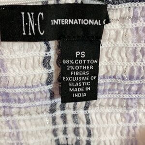 Great cute blouse for fall by INC International Concepts. A must have, great addition to your wardrobe. - Color: London Plaid ( White base with purple stripes and accented with silver stripes) - Pull Over - Plaid - Ruched - Ruffled Edge Hem - Square Neck - Long Sleeve With Elastic Hem - Made In India - Materials: 98% Cotton, 2% Other, Elastic - Care Instructions: Machine Wash Cold, Tumble Dry