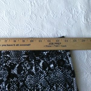 I.N.C. Womens Snakeskin Print Faux Pocket Detail Capri Pants. Good condition. Label size 2. Colors - black & white. Fabric cotton & spandex. Waist 14" Length 30". All measurements are taken flat, from the seam/stitch start when available, & approximate. Item is stored in a pet & smoke free environment.