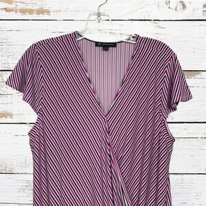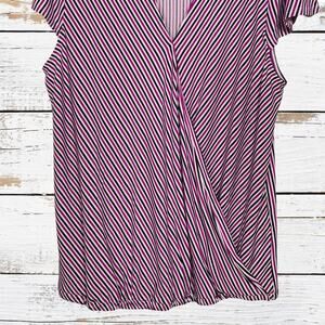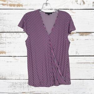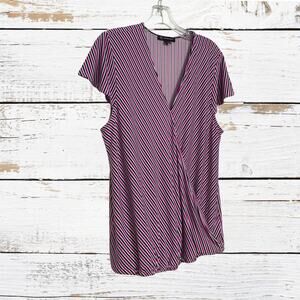 INC Striped Cap-Sleeve Wrap Shirt Black White Pink