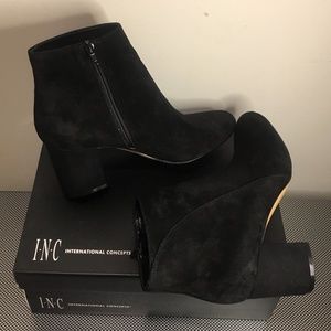 INC Suede Block Low Heel Ankle Zip Booties