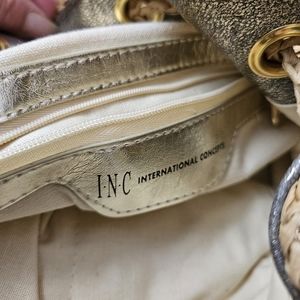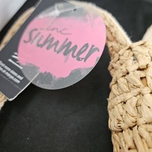 INC Summer Rattan Drawstring Bucket Bag