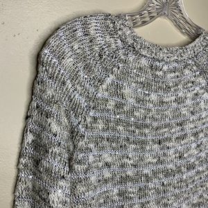 INC Sweater Black White Silver Sequin Crewneck Raglan Sleeves NWT Small