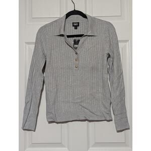 INC Sweater Womens Medium Gray Ribbed Collared Polish Belle Henley Button Pullover