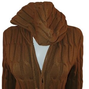 INC Sweater Zip Up and Hood Brown Cable L