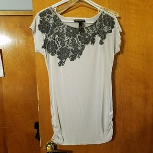 Black lacy top with creamy short sleeve t-shirt. Look great layered under sweater or jacket this winter. Go from office to cocktails Bought in mall on million dollar mile. Michigan Ave. Downtown Chicago. ❤❤And now it could be yours.