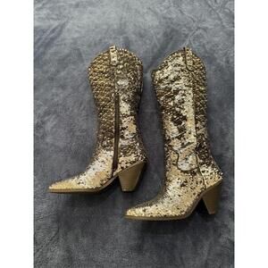 I.N.C. Tall Silver Sparkling Sequin Pull Tabs Western Style Boots Size 8