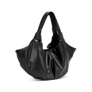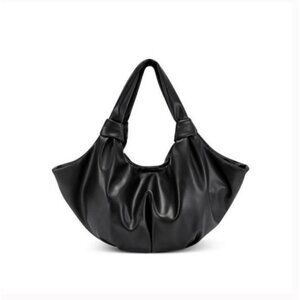 Solid color in black with knot details at the handles. Ultra soft and lightweight. Medium shoulder bag style.