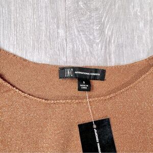 Size S tan color top with rose gold shimmer metallic accents. Tunic style. New with tags.