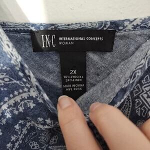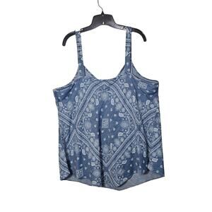INC Tank Top Womens 2XL Blue Bandana Linen Blend 90s Y2K Cami Retro