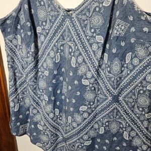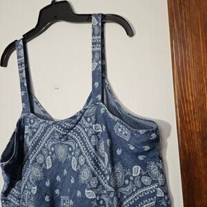 INC Tank Top Womens 2XL Blue Bandana Paisley Linen Blend 90s Y2K Cami Retro. Excellent Condition.