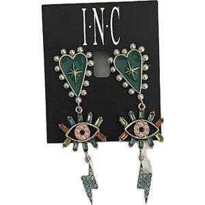 ITEM:  INC Teal Heart -Evil Eye- Bolt Pearl Crystal Detail Triple Drop Linear Earrings