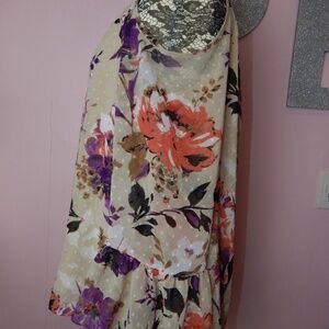 A blouse in a wonderful floral print. This top ties at the neck and has great flowy bell sleeves.