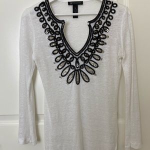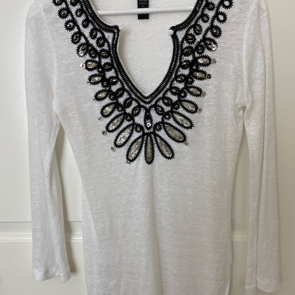 Bell sleeve, slit on sides, some missing beads not noticeable