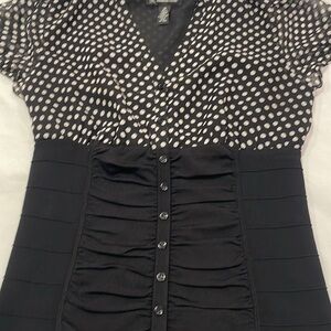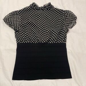 polka dot design on the top with fitted black along the bottom