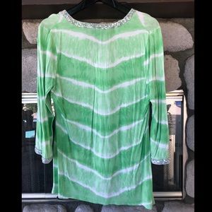 Love the color. Super cute with white pants. Spots and 2 small holes, take a look in pictures.
