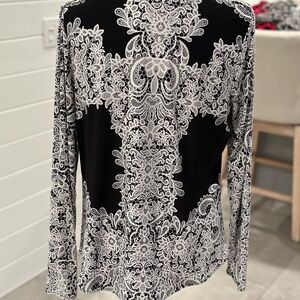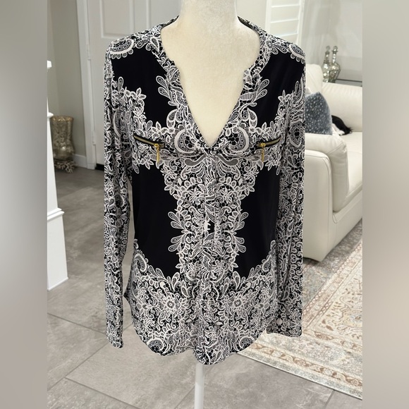A stylish top purchased from Macy’s, currently still in style. Perfect for work or contemporary events, this versatile piece is size Large and in excellent condition. Add a touch of elegance to your wardrobe with this fashionable and timeless top!