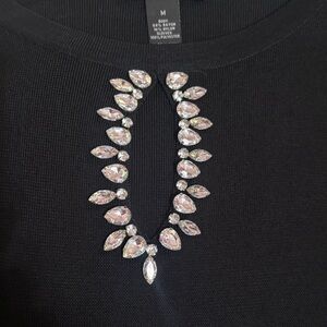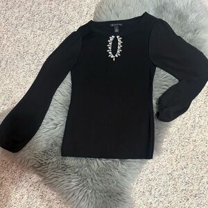 This like new elegant black top features a stunning jeweled keyhole neckline and sheer sleeves, perfect for adding a touch of sophistication to any outfit. Ideal for both casual and formal occasions. Clean, cat-friendly, smoke free home.