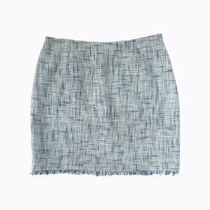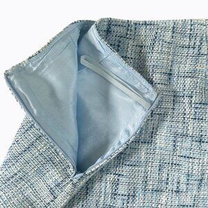 INC Tweed Mini Pencil Skirt Sz 8P Powder Blue Fringe Hem Preppy Y2K Office Siren