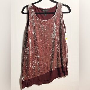 INC Velvet Sleeveless Top in Burgundy Silver M NWT