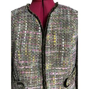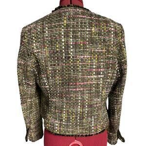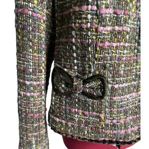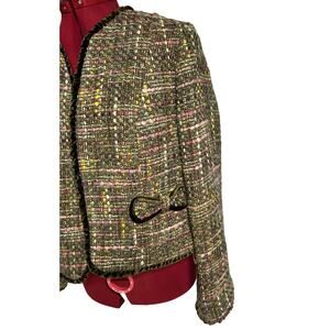 INC Vintage Women’s Size 14P Wool Blend Y2K Tweed Blazer With Velvet Trim Bow Pockets