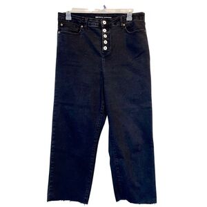 INC Vintage Wash Faded Black High Rise Exposed Button-Fly Jeans Size 16