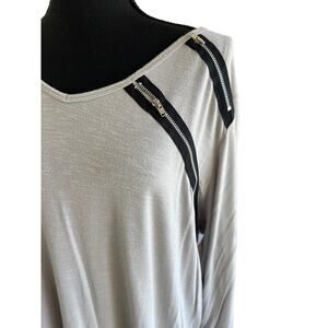 INC Viscose Grey Shirt/Tunic with Black Zippers - 2xl - EUC