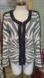 INC White Blk Gold Metallic Zebra Fringe Sweater Zip Pocket Cardigan