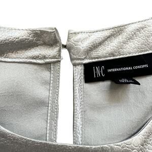 Show off a hint of skin in this cold-shoulder plus size top from INC International Concepts, featuring an embossed snakeskin pattern in silver / white.