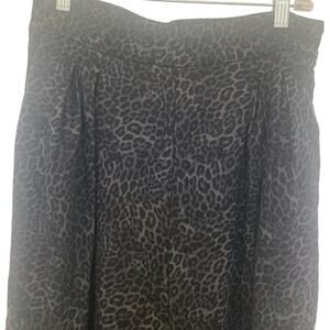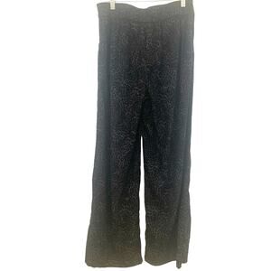 INC Wide Leg Pants 6 Black Leopard Womens High Rise Palazzo Linen Blend Pull On