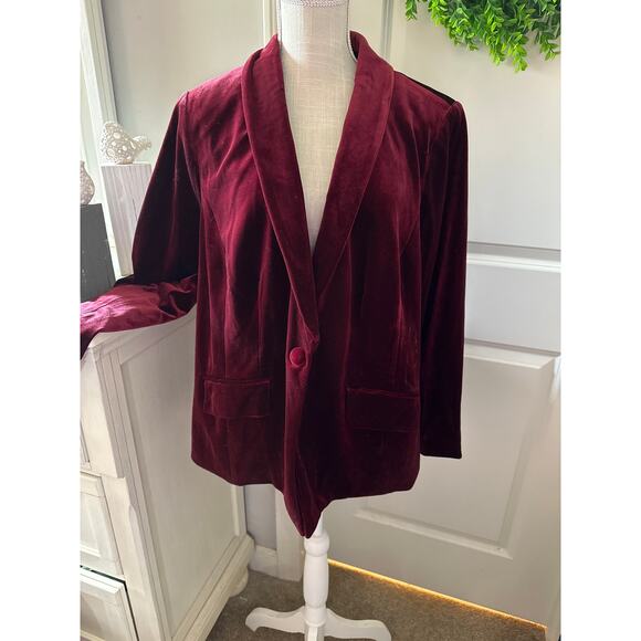 INC. Woman Burgandy Velvet Blazer Size 1X NWT Really Beautiful 33 pit to pit 38 length