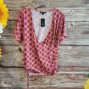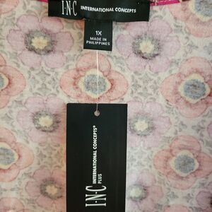 "INC" Woman's deep V-neck shirt Size: 1X short Sleeve Multicolored floral NWT