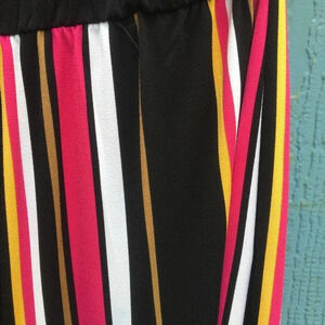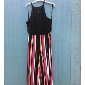 INC Women Pink Striped Black Sleeveless Halter Wide Leg Jumpsuit XL NWT