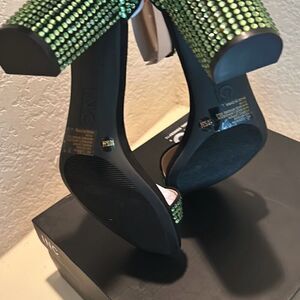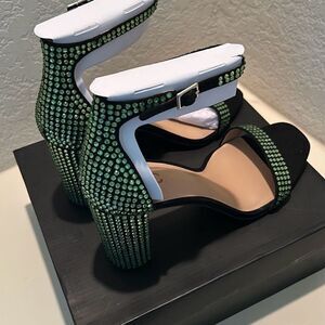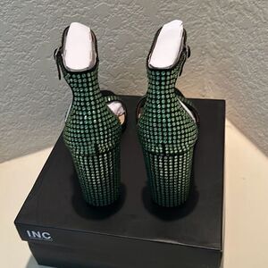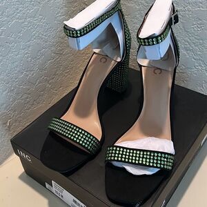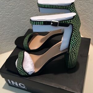 INC Womens 10.5 Green Bling Rhinestone Heel Sandals Black Strappy Cocktail Party