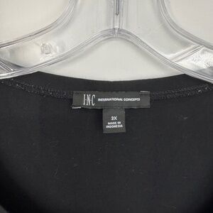 INC Womens 3X Pullover Knit Top Tee Black Round Neck Knot Detail Short Sleeves