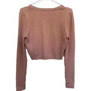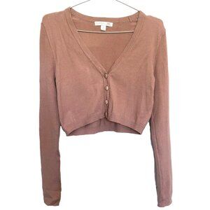 INC Womens Beige Long Sleeve V Neck Crop Button front Cardigan Size M