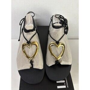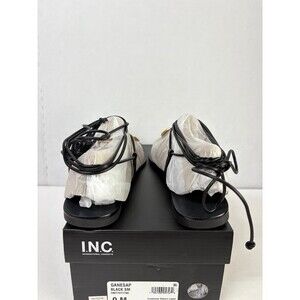 Brand new INC Women's Black Ankle Wrap Tie Heart Ganesa Round Toe Thong Sandals Shoes 9M