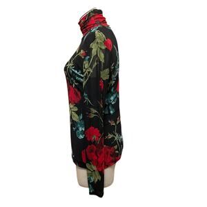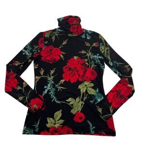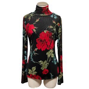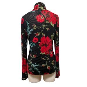 INC Womens Black Red Mesh Rose Print Sheer Long Sleeve Goth Y2K Top Sz S